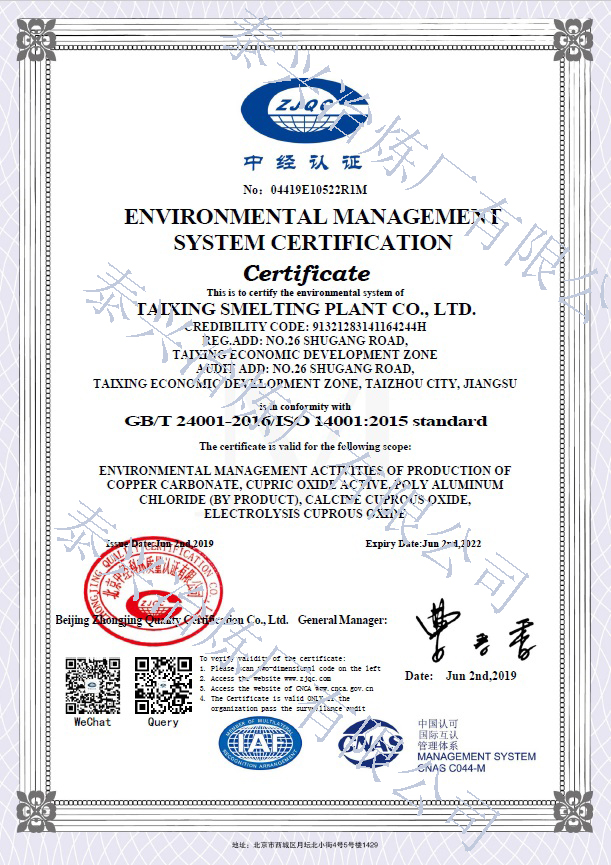 是我國《工業氧化亞銅》、《工業堿式碳酸銅》、《工業活性氧化銅》行業標準的起草單位